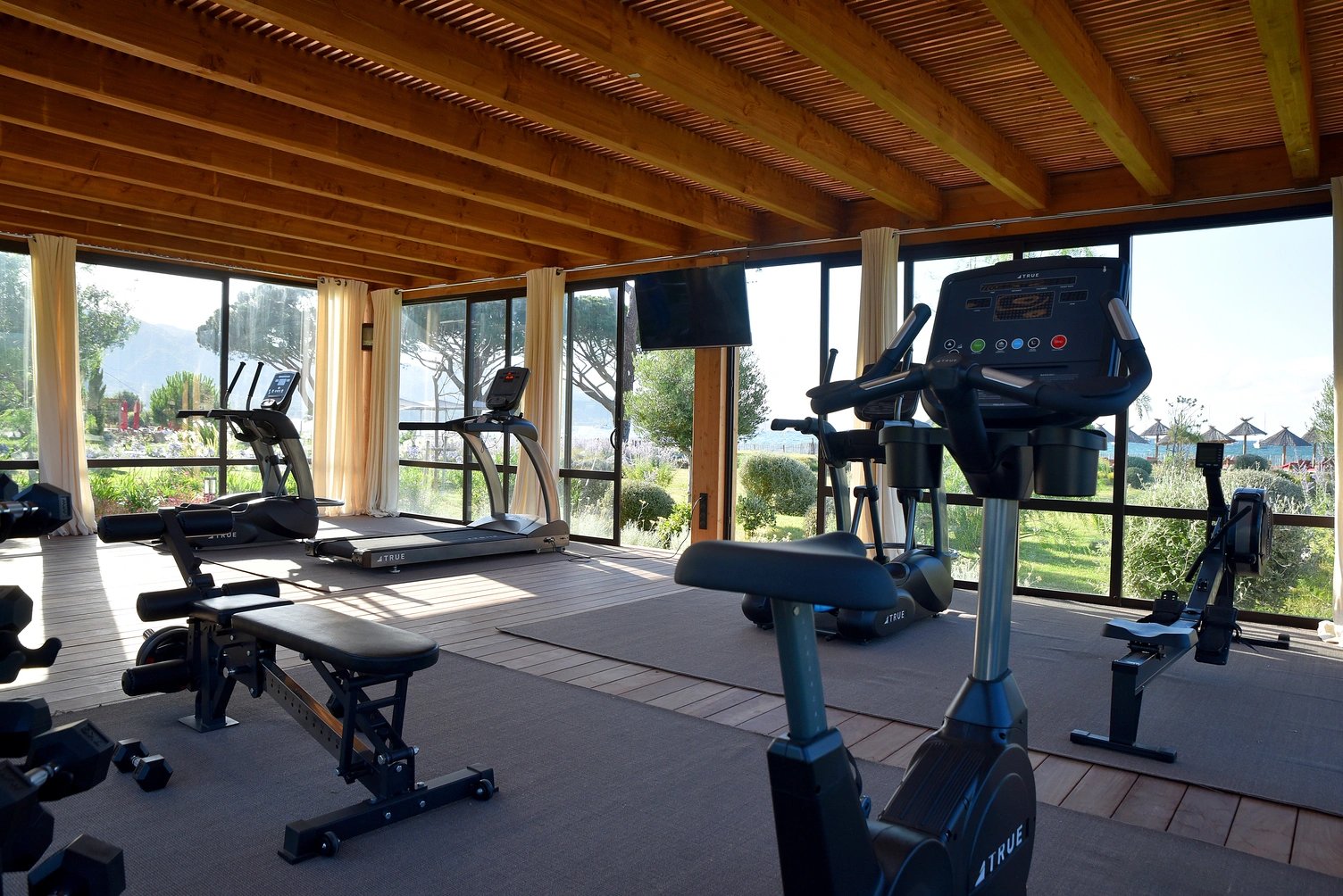 Difficile de ne pas être séduit par une salle de sport flambant neuve, cernée par un parterre de fleurs aux couleurs d’été et une vue enchanteresse sur le bleu de la Méditerranée. À l'Hôtel La Roya, prenez soin de votre forme grâce à notre salle de fitness entièrement équipée. Profitez de nos installations modernes, comprenant tapis de course, vélo elliptique, rameur et bien plus encore, pour rester actif pendant votre séjour. Que vous soyez adepte de cardio ou de renforcement musculaire, notre espace est conçu pour répondre à tous vos besoins sportifs, mais avec le privilège d’une vue sur mer hors du commun.